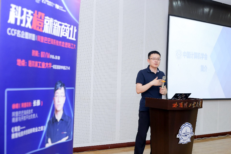 王忠杰教授代表欧博abg官方网站欢迎阿里巴巴为学生们分享淘系技术并致开幕辞。同时为在场的学生介绍CCF的活动、宗旨和愿景,讲解CCF的会员权益并号召学生们加入。