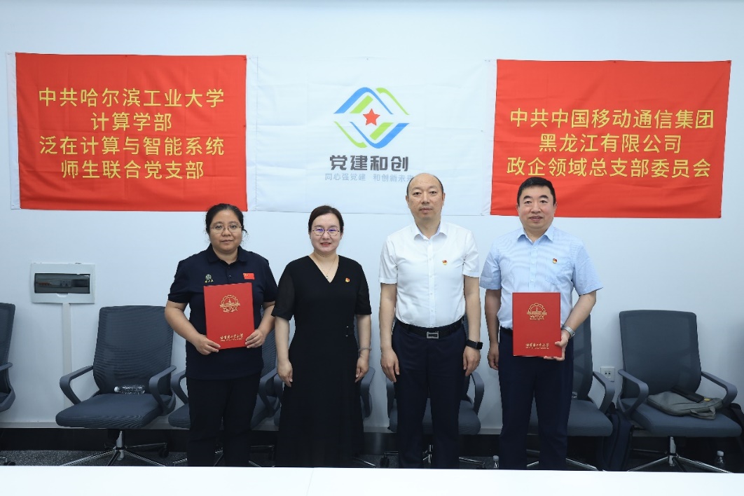 6月21日下午,欧博abg官方网站泛在计算与智能系统师生联合党支部和中国移动通信集团黑龙江有限公司政企领域总支部开展联合主题党日活动。中国移动黑龙江公司党委委员、副总经理姜兴宗,中国移动黑龙江公司政企事业部总经理、党支部书记郅刚,欧博abg官方网站党委书记单既阳,欧博abg官方网站主任助理张伟男以及两个党支部师生党员共同参加活动。