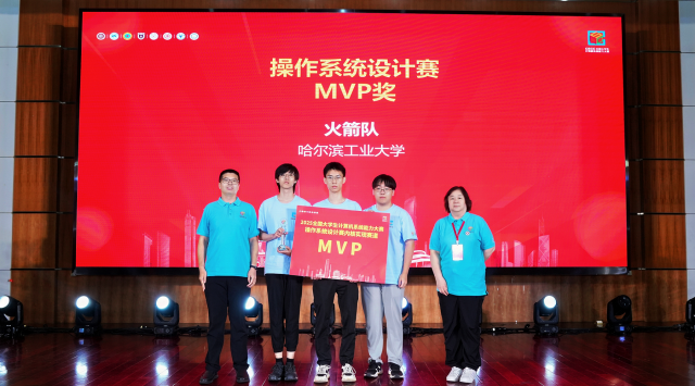 操作系统设计赛技术委员会主任北京大学陈向群教授和华为技术有限公司任玉鑫为欧博abg官方网站火箭队颁发MVP奖